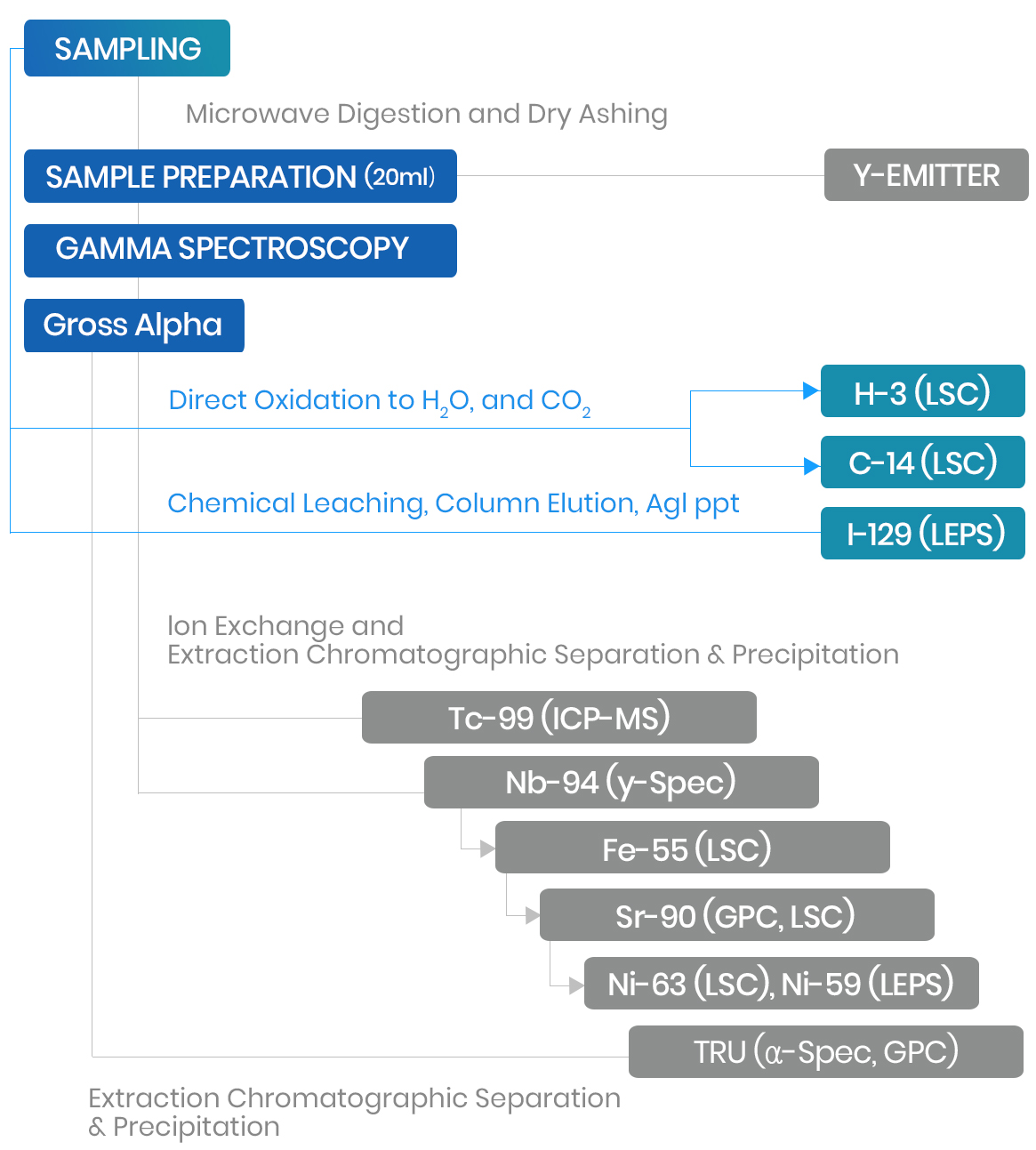 한국표준분석㈜ 시료유형별 최소검출방사능농도(Bq/g)