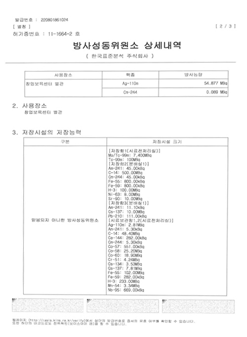2019년 6월 국내 민간기업 최초로 원자력안전위원회로부터 원전발생 중저준위 방사성폐기물 방사능 분석 목적의 방사성 동위원사용허가를 획득하였습니다.