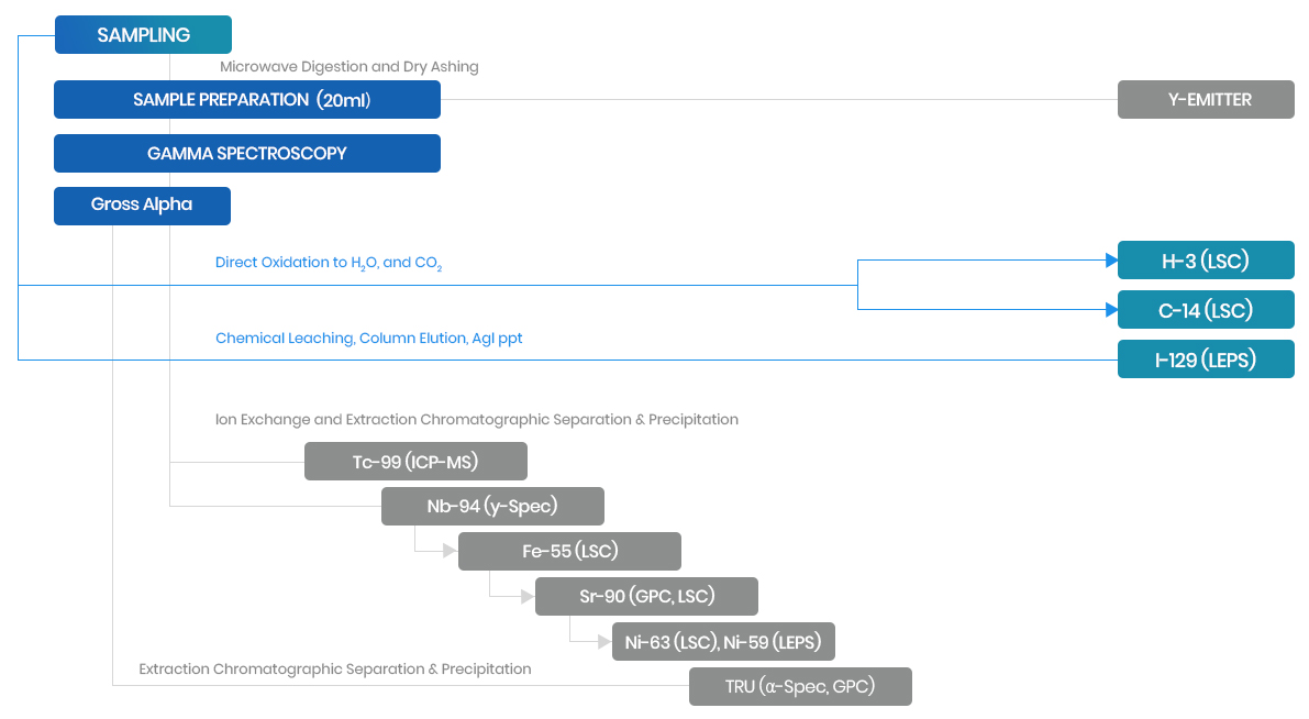 한국표준분석㈜ 시료유형별 최소검출방사능농도(Bq/g)